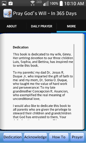 My first iPhone App was based on a wonderful book written by a good friend of my wife. The book is entitled "Pray God's Will - In 365 Days" by Jay Duque. Click on the icon to the right to download to your phone.